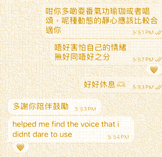 “比預期更多. 我學會接納自己真實的感受.”