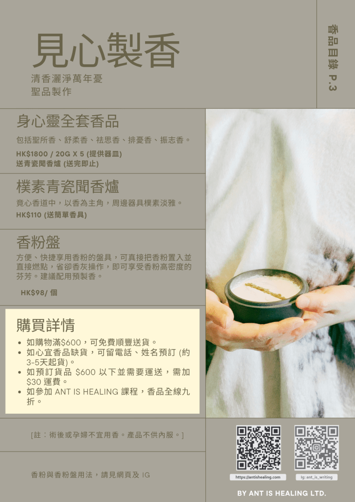 - 凡參加 Ant Is Healing 課程,全線香品9折優惠。